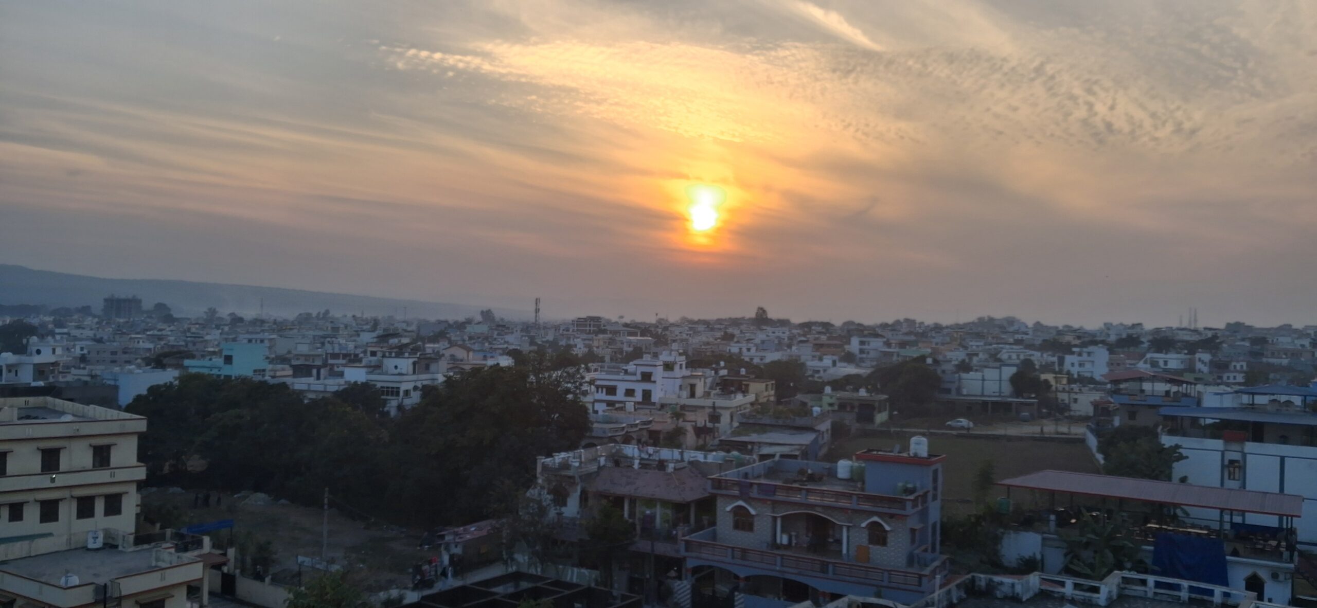 After a clear sky during the day time, a brilliant yellow sunset appeared on the horizon of Dehradun on Tuesday