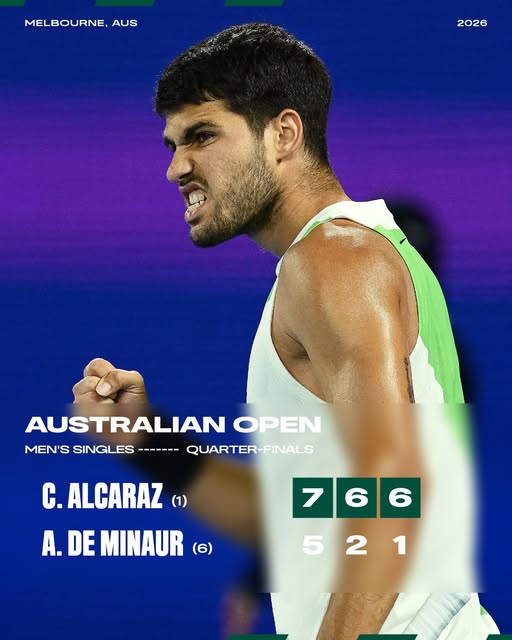 Top seed Carlos Alcaraz (22) on Tuesday stormed into his first-ever Australian Open semi-final at Rod Laver Arena with a ruthless 7-5, 6-2, 6-1 victory over home favourite Alex de Minaur.