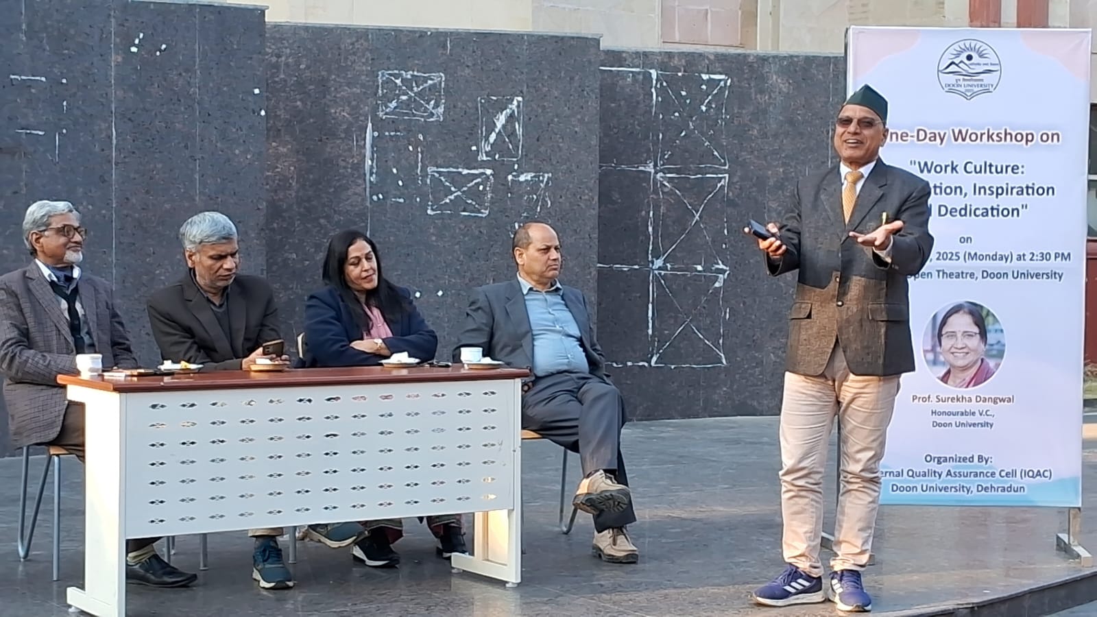 “Therefore, we should never consider our work to be less or more significant. Our collective goal should be to develop the university as an ideal institution that is counted among the leading institutions of the country and the world. To achieve this goal, we must fulfill our responsibilities and duties with a joyful state of mind and without any pressure,” said Prof Joshi addressing a workshop organized by the Internal Quality Assurance Cell of Doon University on the topic Work Culture: Motivation,  Inspiration and Dedication.