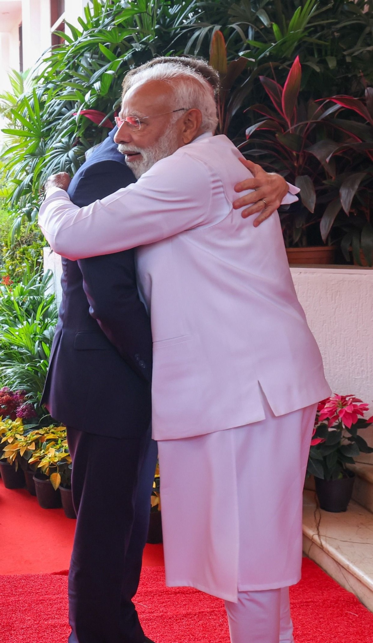 “It’s a delight to meet my friend, President Macron in Mumbai! He told me he really likes the city and also enjoyed his run earlier in the day!,” Modi said on FB. The two leaders hugged each other just like true friends who meet after a long time.