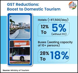- Aligns India’s hospitality tax structure with international tourism destinations, becoming more attractive for foreign tourists.