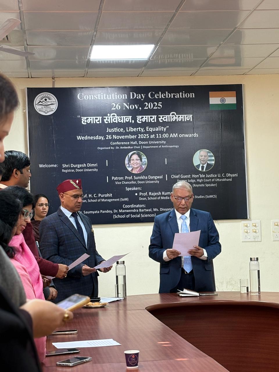 Speaking at the Constitution Day celebrations held at Doon University, he said the Indian Constitution is the world’s largest written document, drafted after extensive study and dedication by the framers of the Constitution.