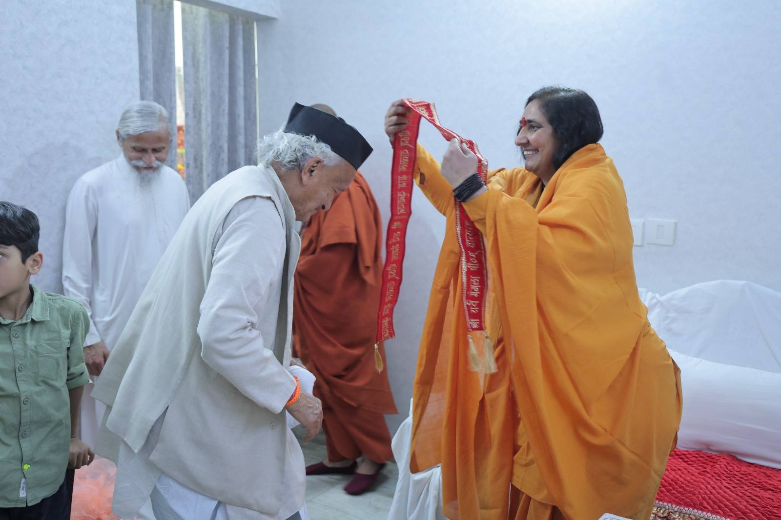 Former Uttarakhand Chief Minister Bhagat Singh Koshiyari met Sadhvi Ritambhara in Vrindavan in Uttar Pradesh.