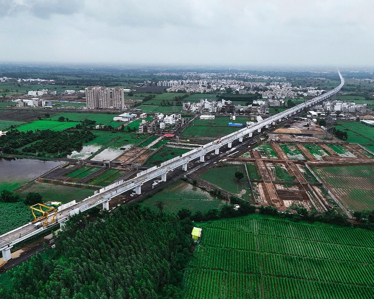 The Surat–Bilimora section, covering around 47 km, is in an advanced stage of completion, with civil works and track-bed laying fully completed. The design of the Surat station draws inspiration from the city’s world-renowned diamond industry, reflecting both elegance and functionality. The station has been designed with a strong focus on passenger comfort, featuring spacious waiting lounges, restrooms, and retail outlets. It will also offer seamless multi-modal connectivity with the Surat Metro, city buses, and the Indian Railways network.