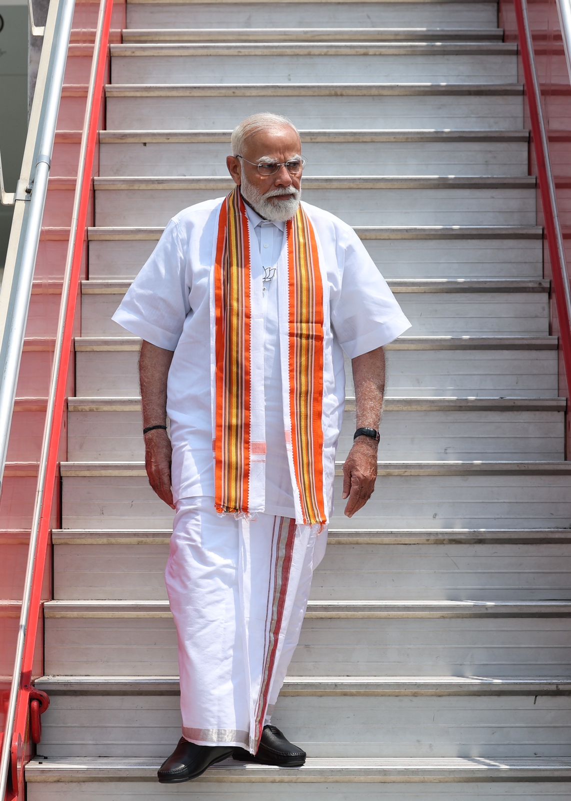 Amid high hopes of a better performance by BJP in the coming assembly elections in Kerala, Prime Minister Narendra Modi opted for a classic Kerala look at the public gathering, pairing a crisp white mundu with a simple kurta in Palakkad. He also draped a kasavu stole with golden edging over his shoulders to add a touch of Kerala elegance.