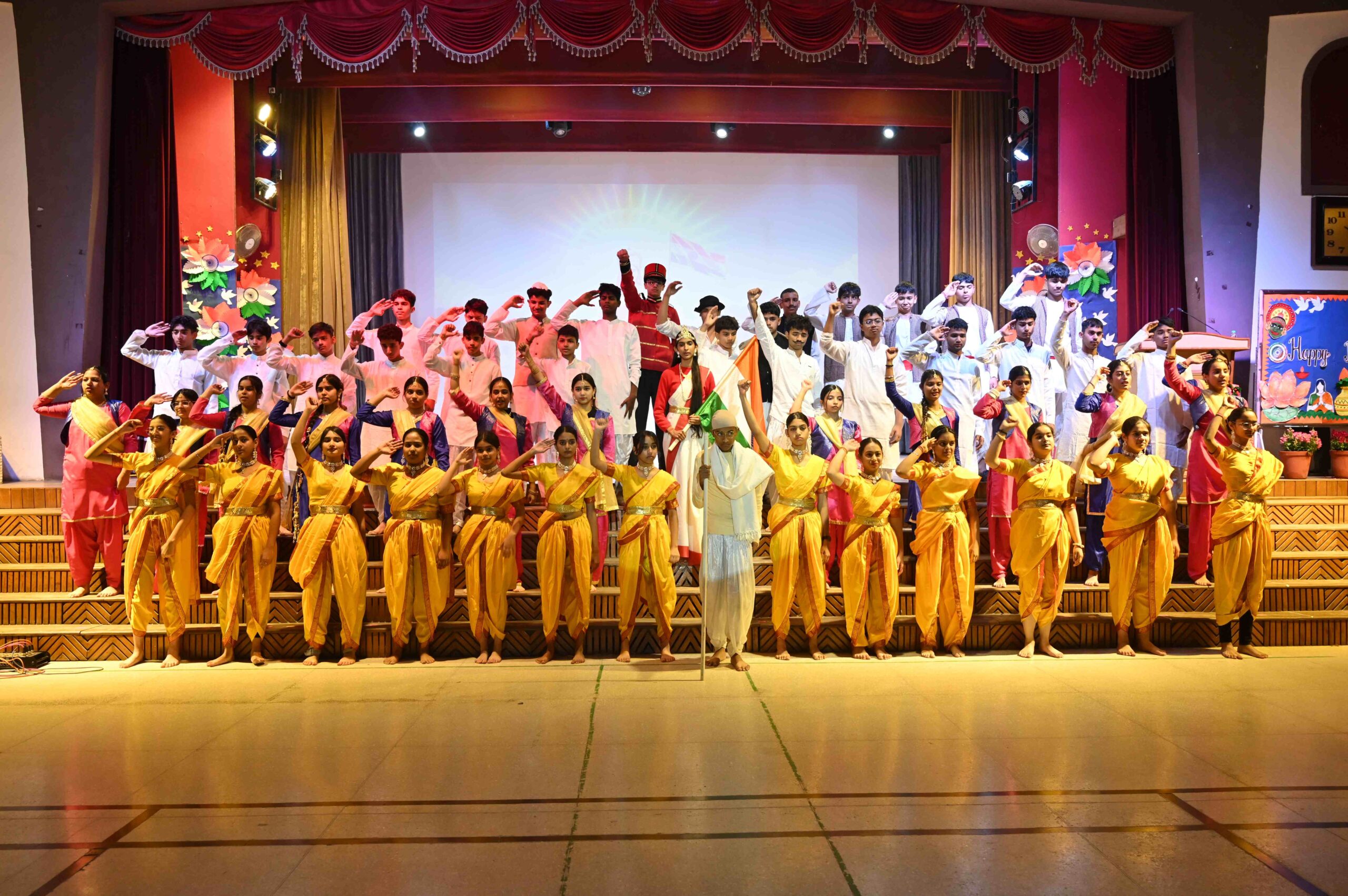 The thought-provoking recitation was followed by a thematic dance performance paying homage to the valiant heroes of India’s freedom struggle. The dancers portrayed the courageous contributions of legendary patriots such as Mangal Pandey, who sparked rebellion within the Indian infantry in 1857, against the East India Company; Rani Lakshmibai of Jhansi, who emerged as a fearless symbol of resistance and laid down her life defending her kingdom against British rule; Mahatma Gandhi, whose philosophy of non-violent resistance united the masses and became the cornerstone of India’s freedom movement; Netaji Subhash Chandra Bose, who led the Azad Hind Fauj; Chandrashekhar Azad, who spearheaded revolutionary activities against colonial oppression; Bhagat Singh, who ignited the spirit of revolution among Indian youth; Jawaharlal Nehru, delivering the historic “Tryst with Destiny” speech; and Sardar Vallabhbhai Patel, who urged the nation to remain united in the face of adversity.