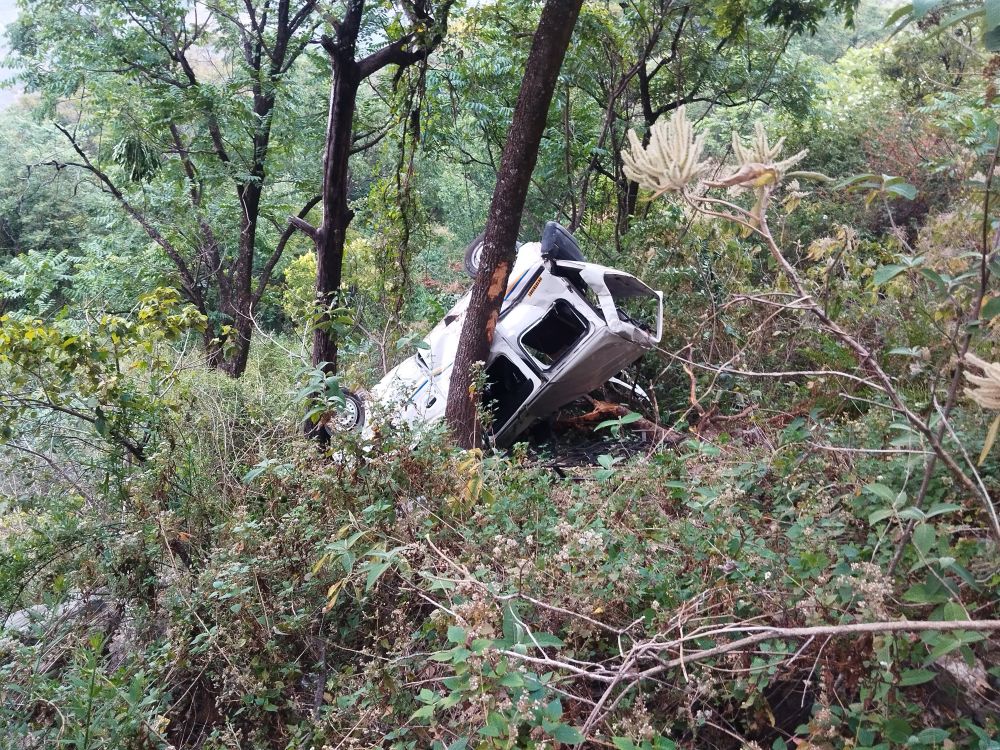 The accident occurred when a vehicle (Registration No. UK 13 TA 1991) lost control on the Bhiri-Kakola motor road and plunged into a deep gorge killing all three people inside the car on the spot.
