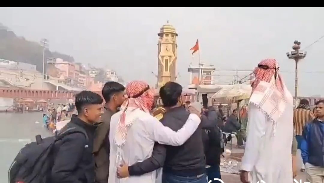 A video has gone viral after two young men who were posing as Arab Sheikhs were spotted at Har Ki Pauri, the main Ganga ghat in the holy city of Haridwar in Uttarakhand on Tuesday.